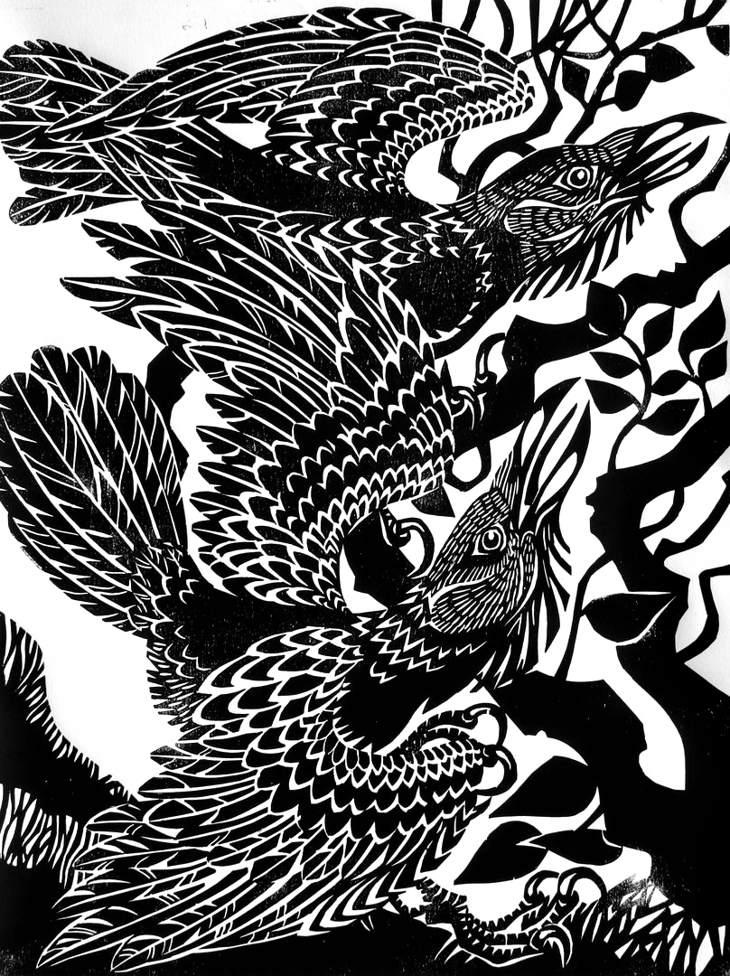 Black & White woodcut print,